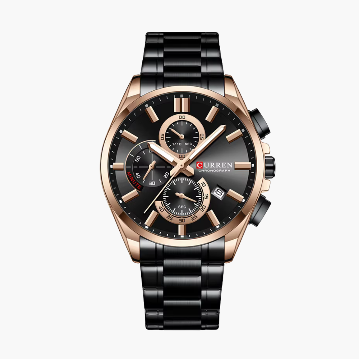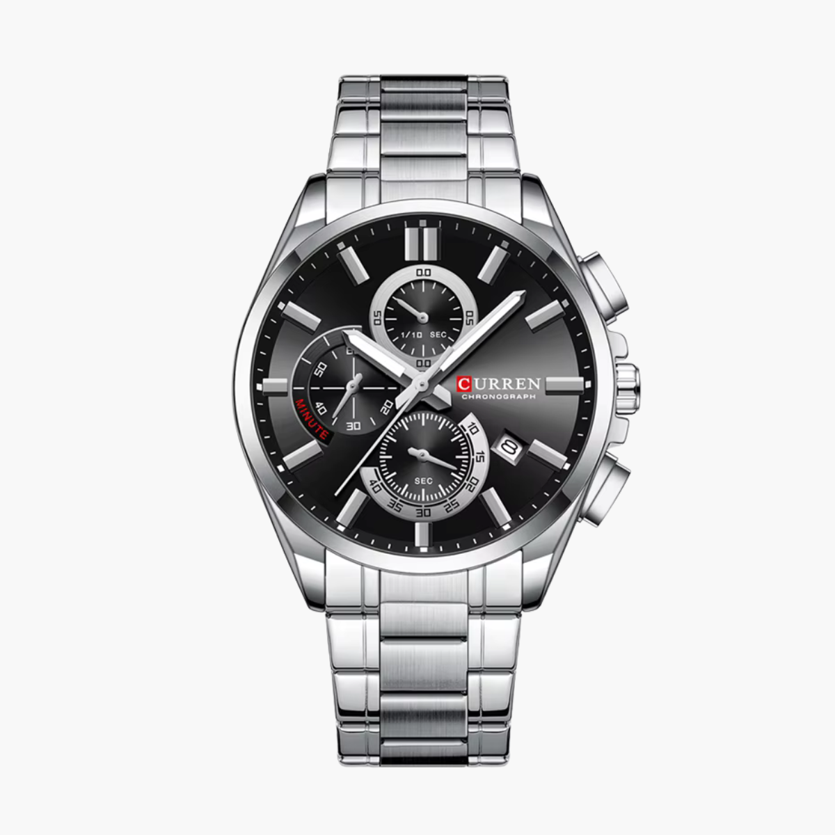 O relógio cronógrafo masculino CURREN 8475 personifica o estilo moderno e o desempenho confiável . Projetado para homens que apreciam precisão e sofisticação, ele apresenta uma pulseira premium em aço inoxidável , caixa em liga metálica resistente e resistência à água de até 3 BAR , tornando-o adequado tanto para ocasiões formais quanto informais.