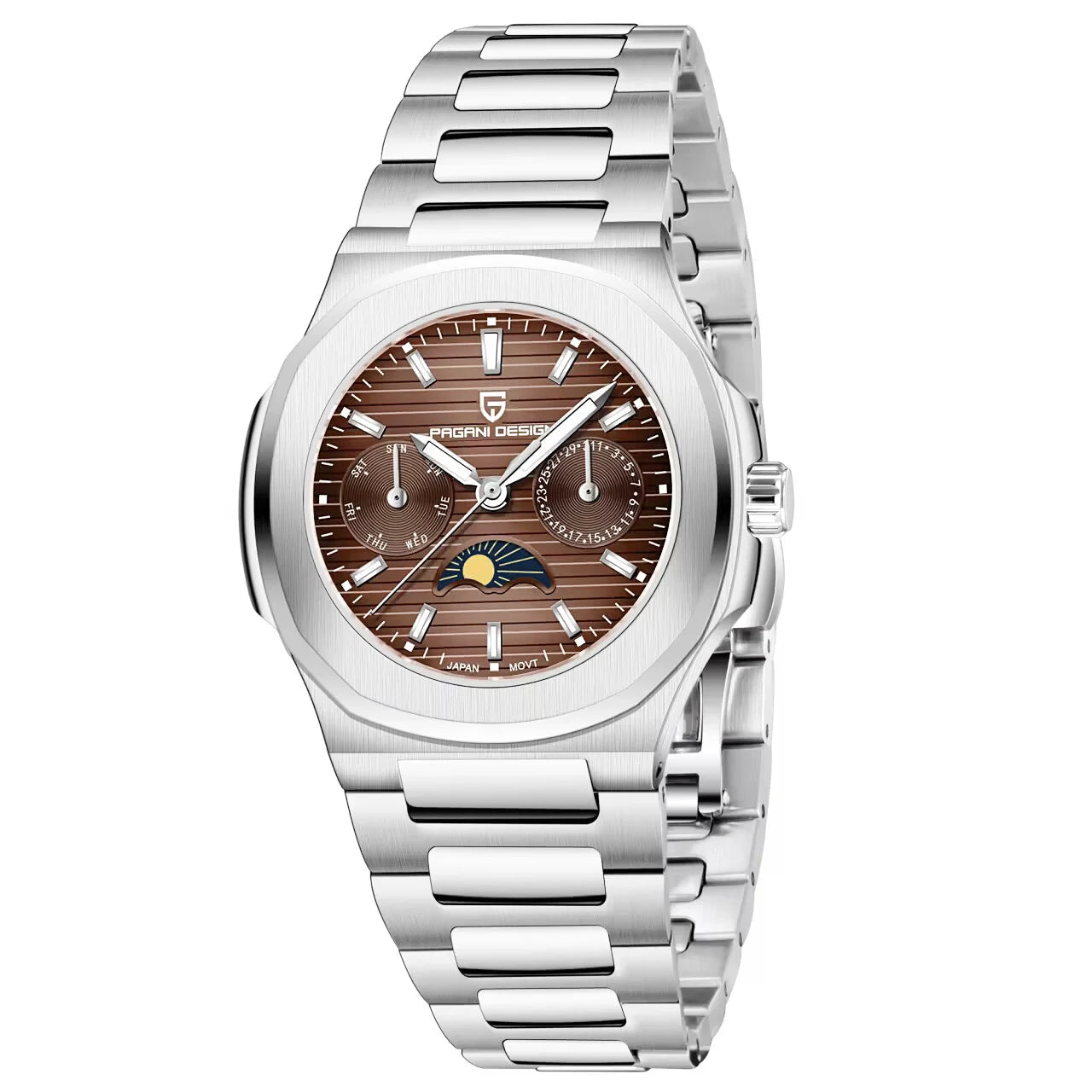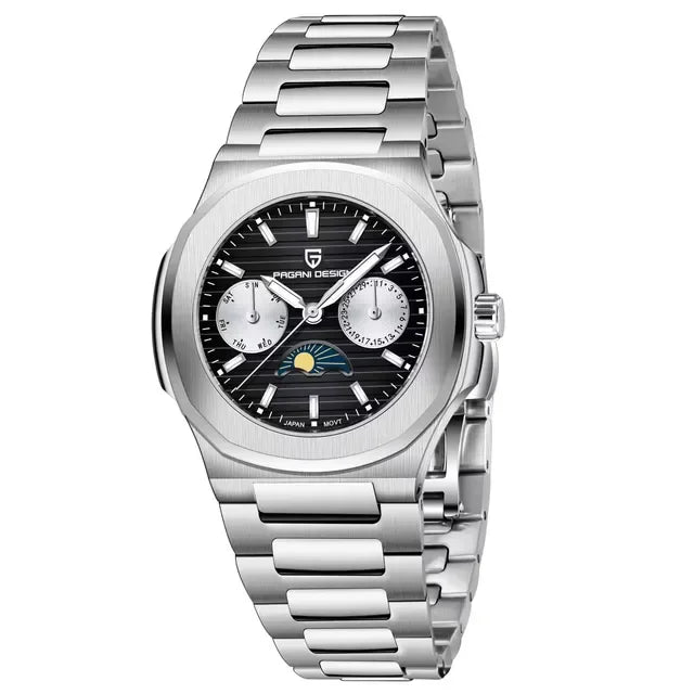 The Pagani Design PD-1786 blends elegance and technology in a refined quartz timepiece. Crafted from stainless steel, both the case and bracelet deliver durability and a polished finish, perfect for men who value precision and sophistication.