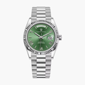 Featuring a stainless steel case and bracelet paired with a scratch-resistant sapphire crystal, this timepiece delivers both elegance and durability. Luminous hands enhance visibility in low light, while 10 BAR (100M) water resistance ensures versatility for everyday, business, and leisure wear.